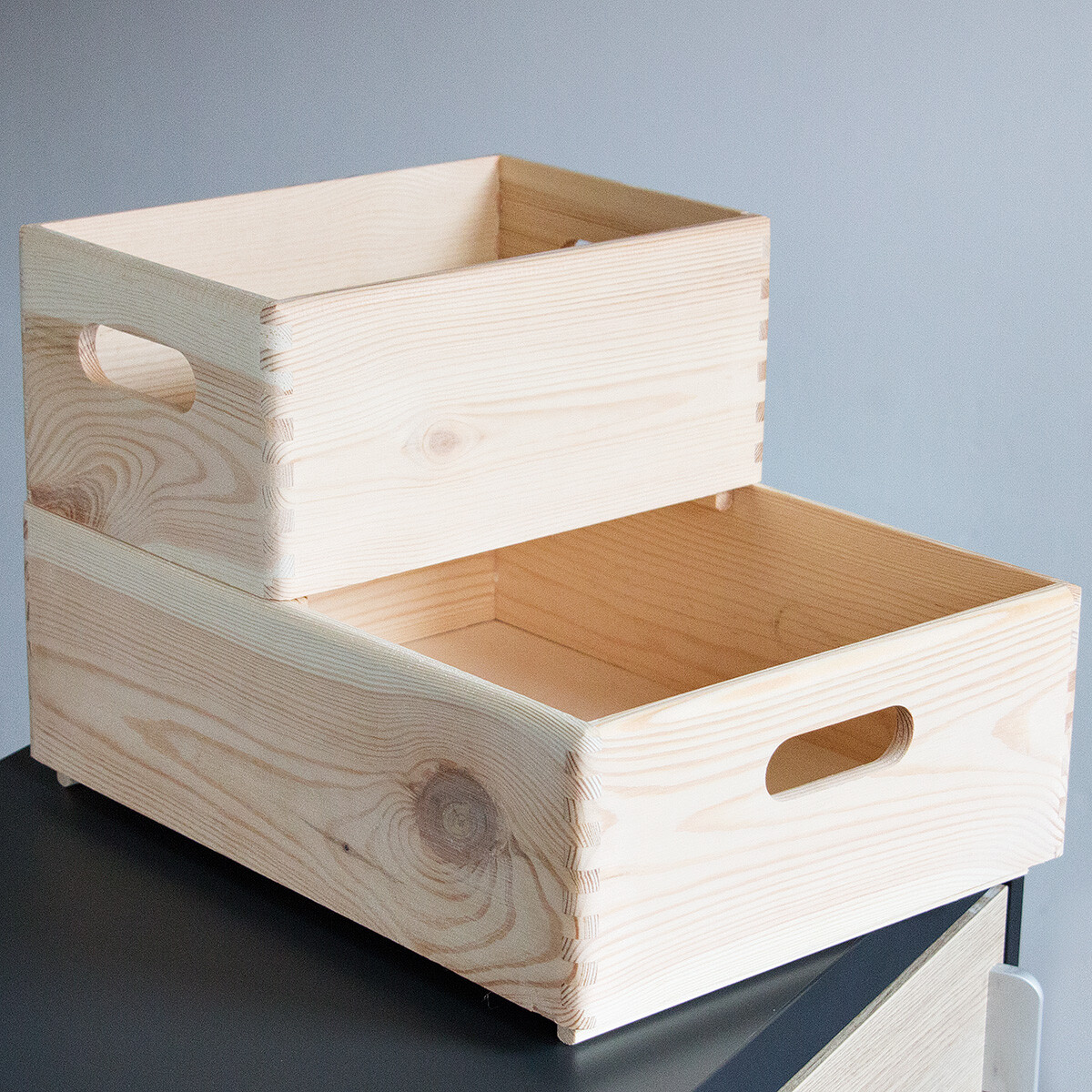 2er Set stapelbare Holzkisten 6+13 Liter Sortierkisten