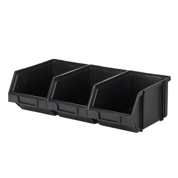 Dieser 3,5 Liter Sichtlagerkasten aus robustem Kunststoff lässt sich modular verbinden, so dass eine stabile Einheit entsteht. Im Inneren bieten die Boxen ausreichend Volumen Lagerware. Die hohen 12 cm Seitenwände können auch sperrige Kleinteile aufnehmen. Neben der seitlichen Verbund Möglichkeit sind sie zudem stapelbar und haben in Warenlägern Platz. Wir nutzen diese Boxen einzeln in einer Meta Regalanlage und verbunden als Regalteiler. Für Gewerbe und Industrie sind die Sichtlagerkästen in der Kontrastfarbe Schwarz gestaltet. Eine tiefgezogene Öffnung vorn lässt Ware bequem entnehmen. Wie jede gewerbliche Stapelbox hat auch die Modulbox eine vollkommen glatte Innenfläche die eine schnelle und gründliche Reinigung gewährleistet. Sie sind gegen die meisten Säuren und Öle resistent und Temperaturbeständigkeit von -20° bis + 80°. Der Sichtlagerkästen ist vorn mit einer 7,5 x 2,2 cm Einschubtasche für Etiketten ausgestattet.