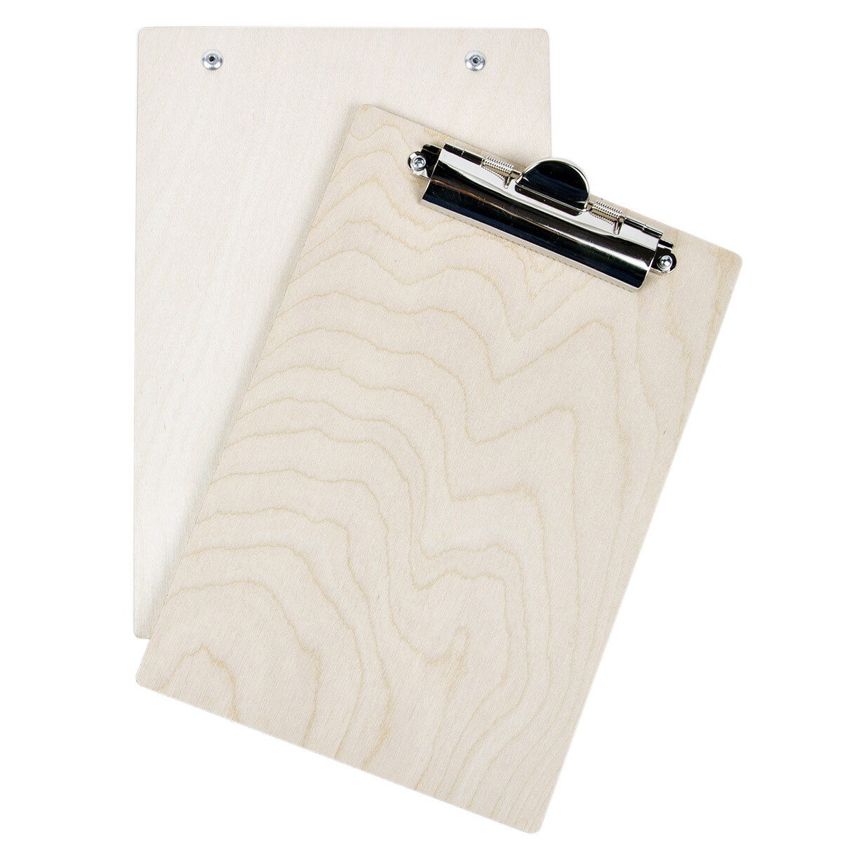 Schreibunterlage aus Holz mit Edelstahl Klemme im DIN A5 Format. Fein geschliffene Oberfläche aus unbehandeltem Holz. Geeignet zum Gravieren. Die Große Edelstahl Klemme fast bis zu 100 Blatt im A5 Format.