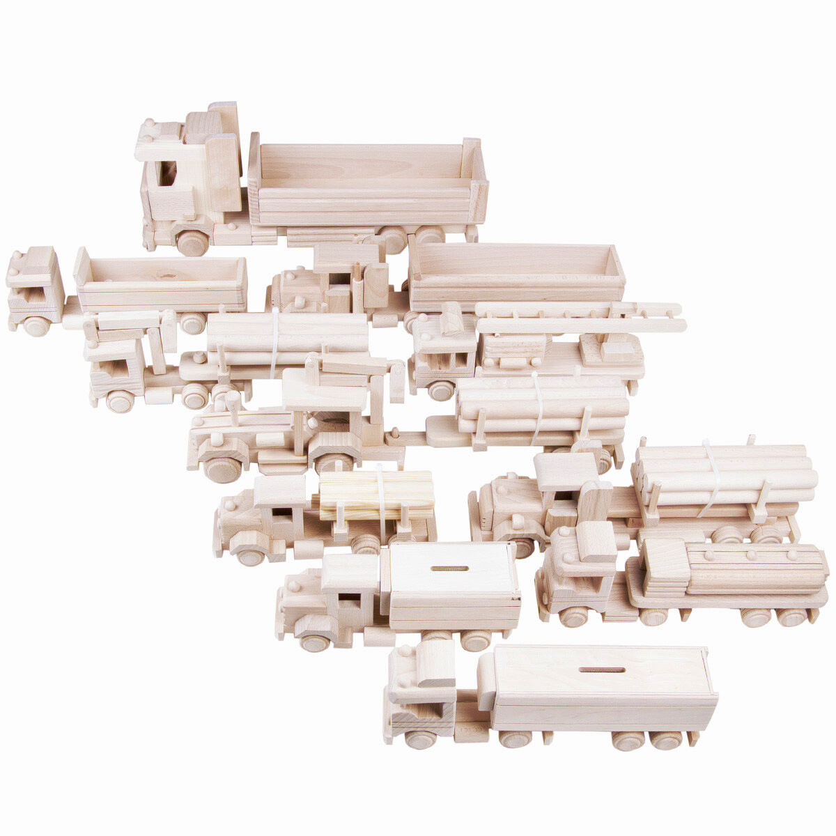 Vom Lenkrad bis hin zum Kran und Anhänger oder die detailreiche Bereifung, dieser Holzspielzeuge lassen keine Wünsche mehr offen.