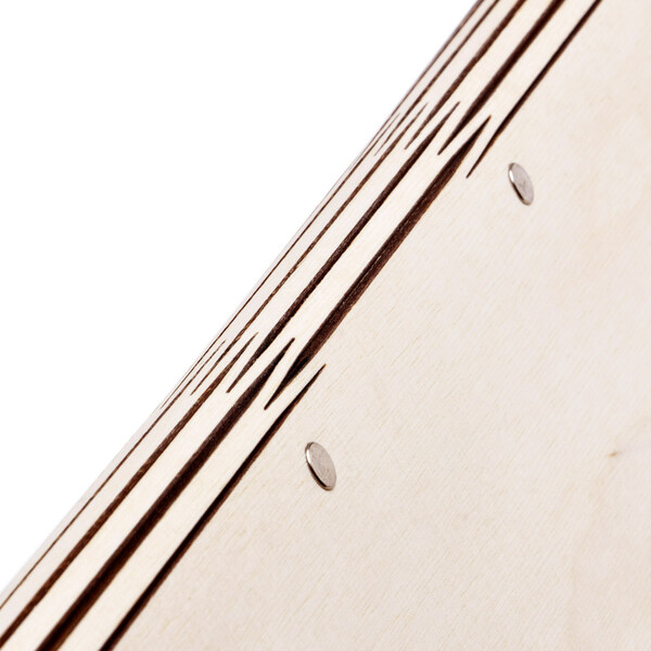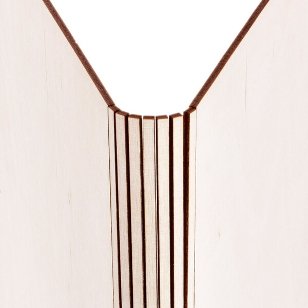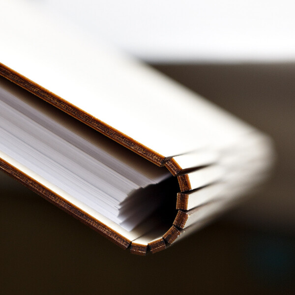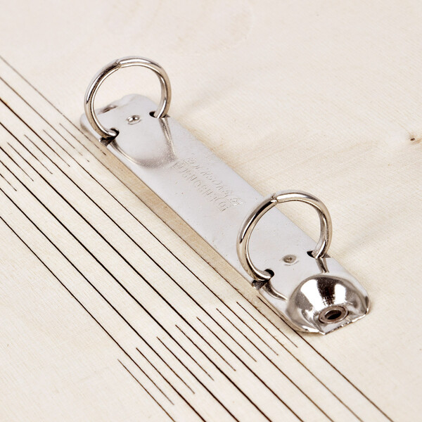 Der Schnellhefter aus solidem Holz wurde dank neuster Technologien so bearbeitet, dass aus starrem Holz ein biegsamer Ordnerrücken wurde, der sich umblättern lässt wie Papier.