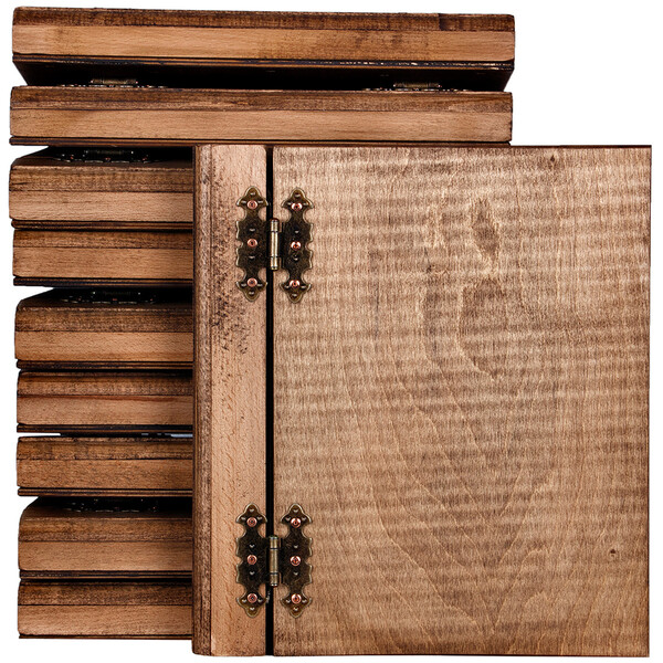 Sie nehmen kaum Platz ein trotz ihrer schweren und rustikalen Erscheinung. Als Nachschlagewerk und für Handbücher in Firmen wurden sie aus edlem Holz gefertigt. Sie sind voll aufklappbar.