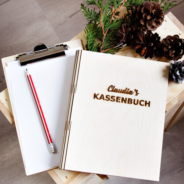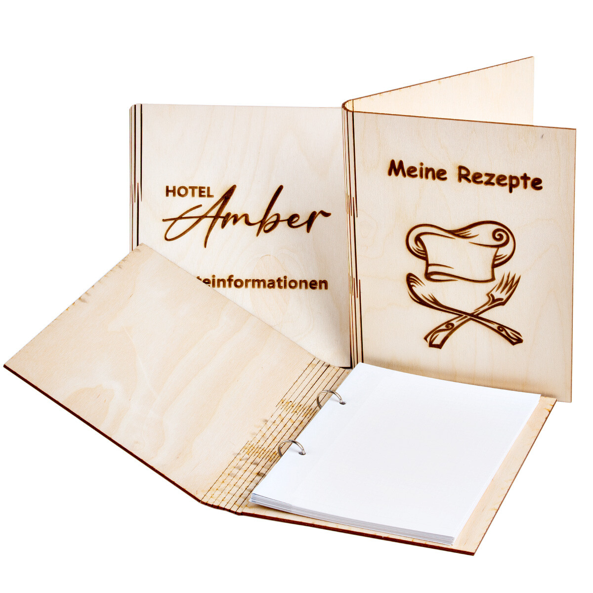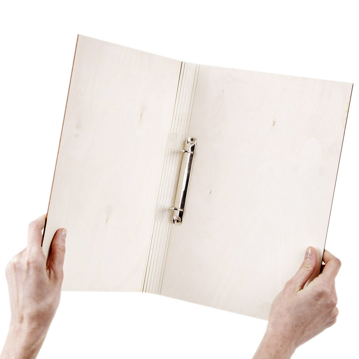 - Art: neutraler Schnellhefter und Ringbuch aus Holz