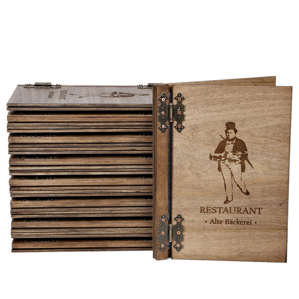 Restaurantkarten im 20er Set Speisenkarte aus Holz, schraubbar zum Auswechseln der Innengestaltung