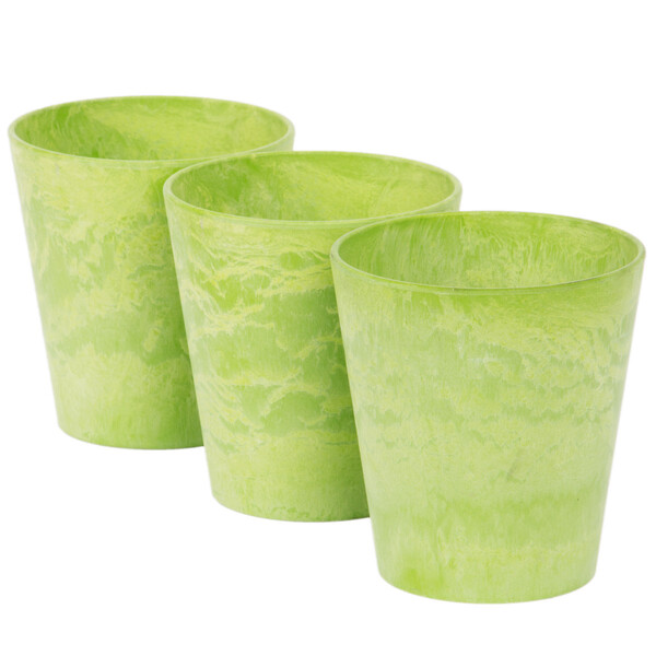 Nach oben auslaufende Pflanzgefäße in Form von Becher. Hier kaufst du ein komplettes Set aus runden Pflanztöpfen. Das Natursteinpulver aus dem diese Töpfe gefertigt sind, sieht aus wie dein Marmor und Natursteinboden. Zudem sind diese Töpfe Recycelbar und Ultra leicht.