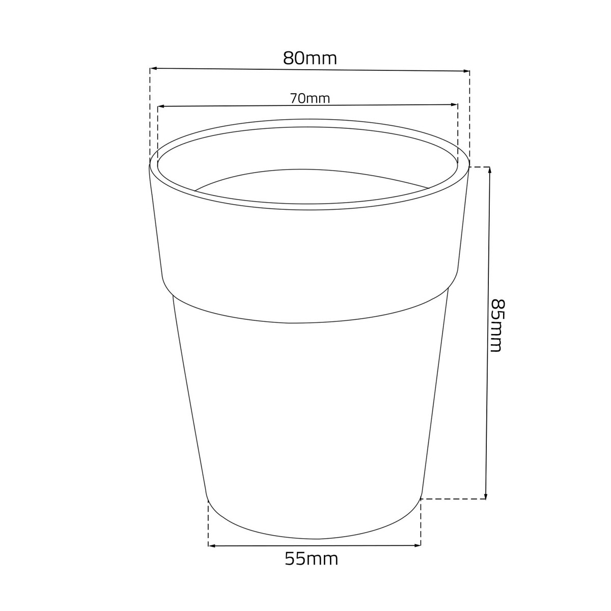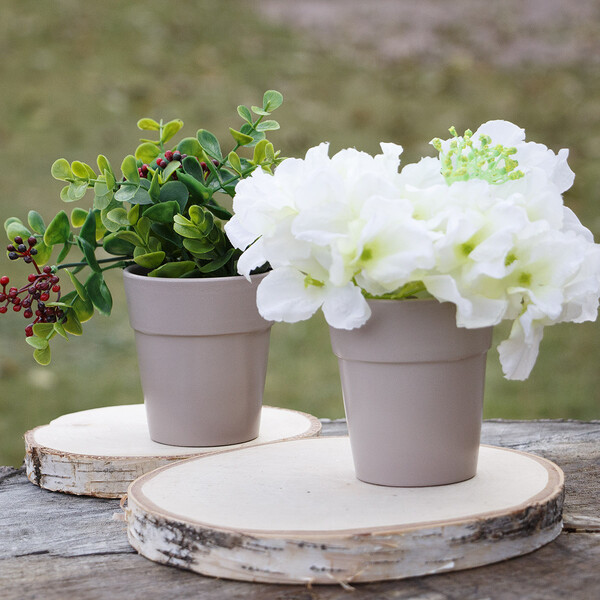 Diese beiden Keramiktöpfchen sind aus Vollmaterial gefertigt und 8,5 cm hoch. Mit einem Fassungsvermögen von 0,2 Liter lassen sich Jungpflanzen, Kakteen und Sukkulenten aufzüchten.
